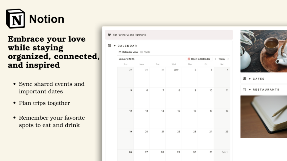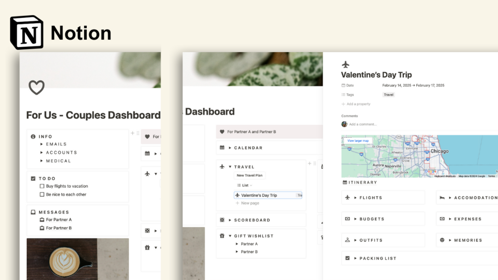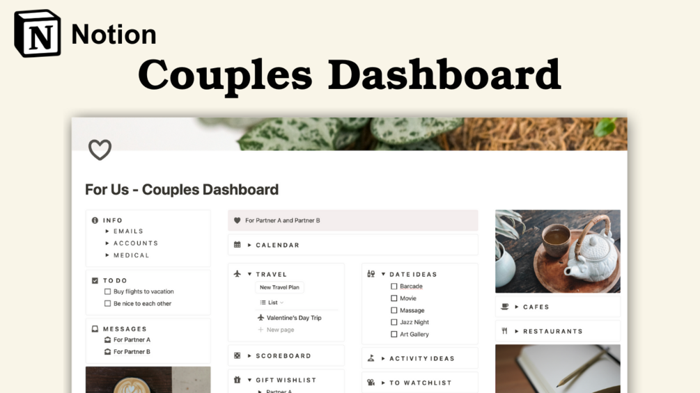 Embrace your love while staying organized, connected, and inspired. Remember your experiences together, brainstorm date and travel plans, and share thoughtful moments. This template includes...